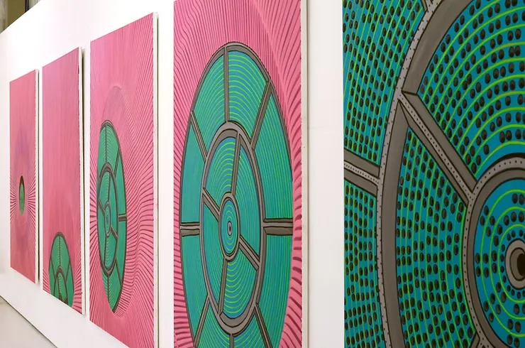 ‘Sekhmet Waits: She who loves Ma’at: She who is powerful: a triptych’: oil on aluminium, 90X120cm ea